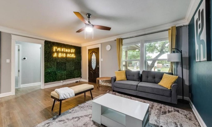 Gametime! Walk to Cowboys/ Rangers Stadium is located in Arlington, just 2.2 miles from AT&T Stadium and 3.3 miles from Six Flags Over Texas. The air-conditioned accommodation is 1.6 miles from Globe Life Park in Arlington, and guests can benefit from on-site private parking and complimentary Wifi. Outdoor seating is also available at the vacation home. Gametime! Walk to Cowboys/ Rangers Stadium features 3 bedrooms, a fully equipped kitchen with a dishwasher and an oven, a washing machine, and 1 bathroom with a hair dryer. A flat-screen TV with streaming services is featured. The vacation home offers bed linen, towels, and laundry service. For guests with children, the accommodation offers an indoor play area. Fort Worth Convention Center is 17 miles from Gametime! Walk to Cowboys/ Rangers Stadium, while Dallas Holocaust Museum is 18 miles away. Dallas-Fort Worth International Airport is 11 miles from the property.