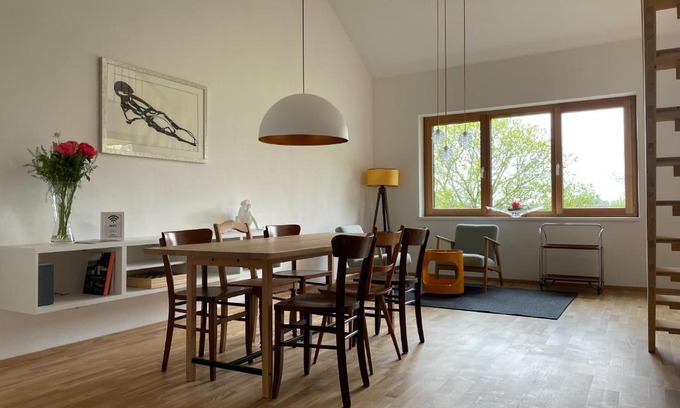 Featuring a garden, Gamsfels Petronella Galeriewohnung offers accommodations in Langen bei Bregenz. This apartment provides free private parking, private check-in and check-out, and free Wifi. The accommodation features a mini-market and bicycle parking for guests. Providing a balcony and mountain views, the spacious apartment includes 2 bedrooms, a living room, flat-screen TV, an equipped kitchen, and 1 bathroom with a walk-in shower. Towels and bed linen are provided in the apartment. For added privacy, the accommodation has a private entrance and soundproofing. Casino Bregenz is 7.8 miles from the apartment, while Dornbirn Exhibition Center is 12 miles away.