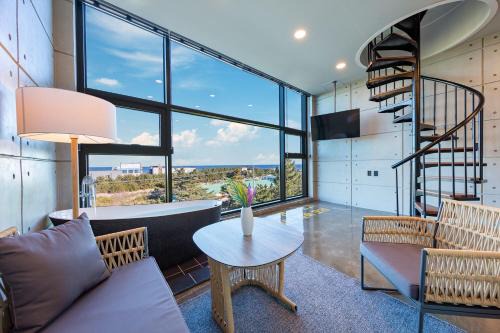 Gangneung joeungot poolvilla offers accommodations in Gangneung, 3.6 miles from Jumunjin Port and 4 miles from Sungju Library. The property is around a few steps from Hapyeong Beach, 24 miles from Pyeongchang Olympic Plaza, and 3.5 miles from Jumunjin Maritime Museum. The villa provides rooms with air conditioning, free private parking, and free Wifi. At the villa complex, all units have a private bathroom with a hair dryer and free toiletries. Charmsori Gramophone & Edison Science Museum is 4.9 miles from the villa, while Gyeongpodae is 5 miles away. Yangyang International Airport is 19 miles from the property.