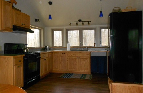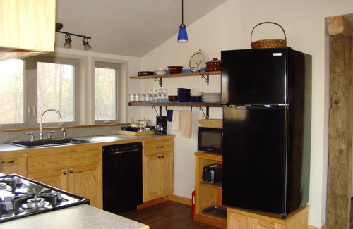 The Woodland Cottage has a fully equipped ready to cook kitchen (please note: there is a 5 cup drip coffee maker - we provide cream substitutes, sugar and Splenda - do bring your favorite coffee.
