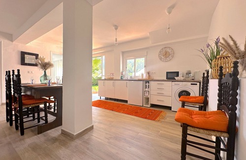 'THE GARDEN HOUSE Malaga City' is an apartment located in an independent villa, located in the most exclusive residential area of the city, with easy access to the beach and very close to the city centre. Available for up to 4 guests, this is an apartment with a beautiful private garden and pool, with barbecue. These areas are not shared and are completely private for guests.The house has 2 bedrooms and 1 full bathroom with shower. It has high-speed WiFi, smart TV. Sheets and bath towels are always provided.Its location is simply perfect, close to the sea and the city, but in a quiet location for rest. Nearby, it is easy to walk to a bus and taxi stop, very good restaurants, supermarkets, and other points of interest.Standard check-in and check-out times are as follows:* CHECK-IN:- Free: from 2 pm to 8:00 pm.- Late 1: from 8 pm to 10 pm (€20)- Late 2: from 10 pm to 12 pm (€30)- Late 3: after 12 pm (€40)* Extra penalty for failure to comply with the check-in agreed time: +€25* CHECK-OUT (subject to availability):- Free: until 10:00- Late 1: from 10 am to 12 am (€20)- Late 2: from 12 am to 2 pm (€35)- Late 3: from 2 pm to 4 pm (€50)- Late 4: before 6 pm(€65)