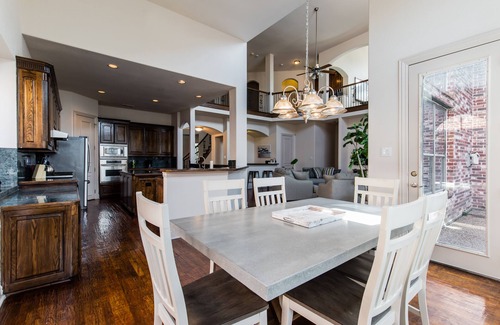 Located just minutes to many corporate campuses, and the North Dallas Tollway. You are also just a few miles to Plano's HOT Legacy East and West. Where you will find lot's of great restaurants and shopping! Toyota stadium, Dr. Pepper Ball Park, and Stonebriar center, and Willow Bend Mall, are also just a few miles away. This stunning 5 bedroom house is hard to beat! The house includes game room with ping pong table, and foosball! The home offers amenities like high-speed WiFi and 3 Smart Tv's.