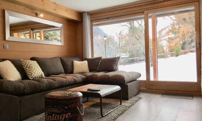 Garden apartment recently renovated in individual chalet in the heart of the Chamonix valley facing the Mont Blanc range.