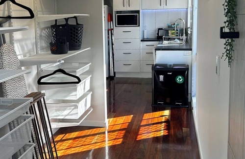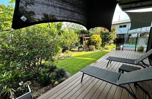 Welcome to our spacious, self-contained studio apartment with vaulted ceilings and air conditioning. Nestled in the garden at the back, it's adjacent to a saltwater pool and overlooks private landscaped gardens.