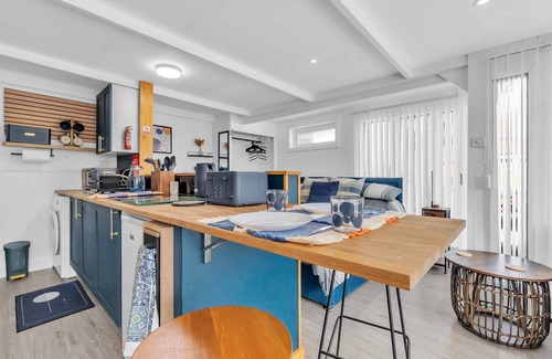 Welcome to The Garden Room, a bright and modern open-plan studio with free private and on-street parking, ideally located in the heart of Lancing. Just a short stroll from Lancing beach green and seafront, this beautifully designed apartment comfortably sleeps up to four guests, making it ideal for couples, families, or professionals visiting the coast. Inside, you’ll find a well-equipped kitchen with modern appliances including a washing machine, and a cosy open plan bedroom living area with a Smart TV and free Wi-Fi—so you can stream your favourite shows after a day by the sea. Step outside to your private patio or try your hand at kite-surfing on the beach. Whether you're sipping coffee at a local café, browsing quirky seaside shops, or catching a golden sunset, this location blends relaxation with coastal adventure. With Brighton, Worthing and Shoreham just a short drive away, the apartment is the perfect spot for a relaxing break, a work trip, or a weekend escape to the sea.