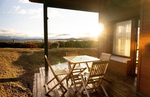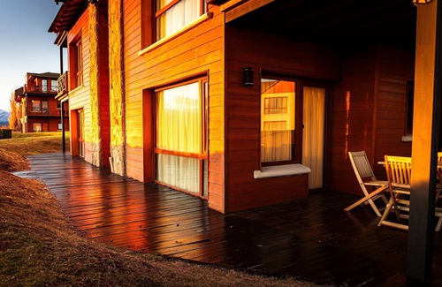 The Resort is located on the shores of Lake Nahuel Huapi, in the town of Dina Huapi, Rio Negro, 14kms from downtown Bariloche. Our flats offer an unbeatable view. The complex has 300 metres of beach on the lake, and a beautiful lagoon with ducks and fish and a beautiful swimming pool only open in summer.
