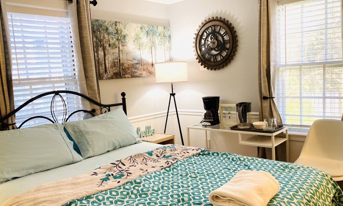 Garden View Private Bedroom w/ 4K 55”TV, Fireplace & Desk | House in Framingham