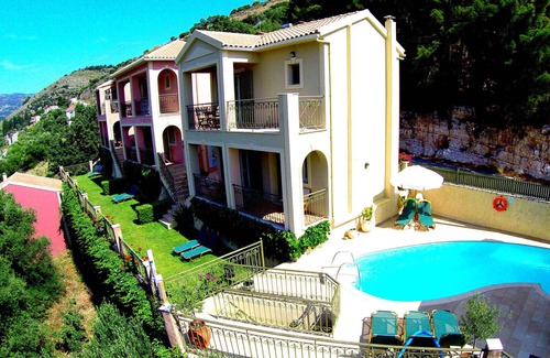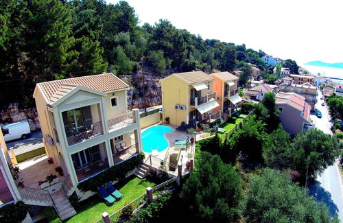 Garden Villa enjoy a magnificent combined sea, mountain and valley view of Agia Efimia.Are ideal for families and couples.Since the villas are all facing towards the south, they all enjoy sunshine the whole day through. The four maisonette villas are all detached and they all enjoy the privacy you would expect. The villas are surrounded by colourful gardens with sunbeds,where you can sunbathe, and attractive plants. Each villa provides its own parking space.Garden Villas provide also a shared sunny swimming pool with a lovely view. The village also has all the amenities you might require throughout your holiday. A short walk (200m) from the villas can drive you to the beautiful beaches and the attractive and popular hardour of Agia Efimia,where most of the tavernas are situated. The Garden Villas are therefore a perfect location for your holiday in Kefalonia. Garden villa has been approved and licensed by the greek tourism organisation