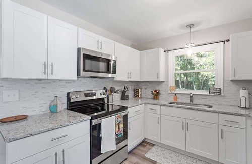 GORGEOUS Ranch with 1 car garage in the HEART of Garner! Features a bright open floor plan with a beautiful kitchen. Living room has a TV and two other bedrooms have a TV in them as well. Nearby restaurants, coffee shops, banks, and grocery. Centrally located to White Oak Shopping Center and highways. Less than 6 minutes to The Maxwell Raleigh Wedding and Event Venue. Easy commute to Downtown Raleigh and RDU airport and can get into DT Raleigh in 10 minutes. Digital Lock on Front Door.