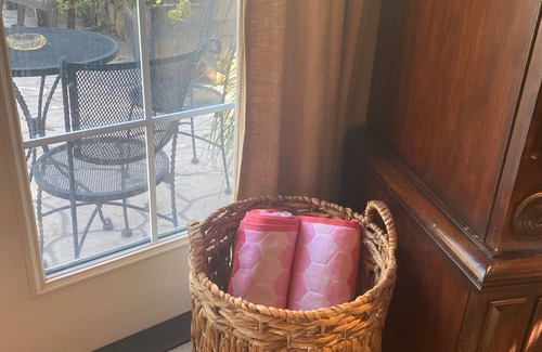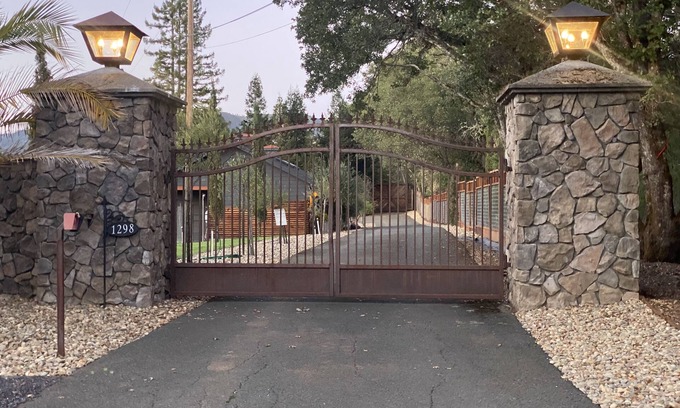 Enjoy your private room, on a gated estate, with French doors that open up to the outdoor pool, with lush garden surroundings and a gorgeous fountain view, out your window, on the front lawn. There's a NEW 2 person private spa!, on the back deck of the Ranch House, for your use, while you are staying with us. There is also a lovely gas fire pit, just steps from your room, just above the pool area. Room has a Tommy Bahama king size sleigh bed, with very comfortable mattress, with luxurious bedding and Tommy Bahama armoire that houses a large Smart TV. Room also has a mini-refrigerator-freezer, toaster oven, microwave and Keurig with complimentary Pete's coffee and creamer. There is a large outdoor Weber-Genesis BBQ, for grilling and two outdoor dining tables. There are several restaurants, just minutes from the estate, if you want to "go out" or pick up "take-out" to dine in. Let us know if you would like any recommendations! There is an outdoor shower but master bathroom also has a lovely oversized shower, as well. You also have a view of the beautiful barn with 2 sweet mules, 6 very friendly goats (various breeds) and of the front and back vineyards. This room is a private, romantic setting to relax around a gorgeous pool, to take a spa or enjoy a glass of wine at the gas fire pit . In addition, the 1 acre lake has various seating spots, where you can sip on a glass of wine or watch the gorgeous notorious Redwood Valley sunsets. This property is special and we are very excited to share it with you!