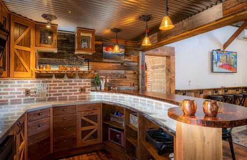 Wi-fi and numerous outlets will make computer use a breeze. Walls feature original stone and barn wood, as well as metal and wood ceilings, unique lighting, and rustic décor. The expansive entrance offers coat hooks and room for boots, skis and bikes. Visitors are in awe when they first step inside this cozy, roomy, and unique barn.