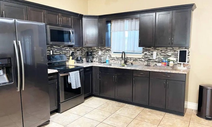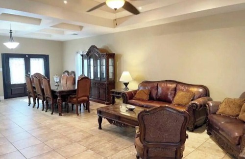 House is an open concept that will let you feel connected with your friends and family while still having privacy in each bedroom. It has 4 spacious bedrooms and 2 bathrooms. Total 5 beds. Each bedroom has it's own smart TV with Spectrum Cable/Wifi. House includes a covered patio/table/chairs/BBQ Grill perfect to BBQ in any weather. House has a spacious closet pantry ready for you to store your food. Pantry has board games for you to enjoy with your family/friends. This house has a lot of open space that is perfect for big families.