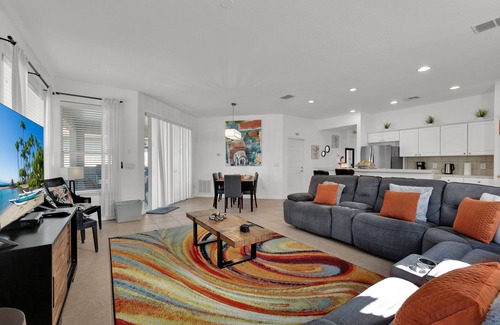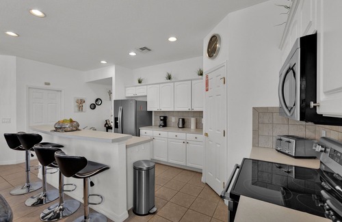 This beautiful, contemporary styled 2-storey villa is the perfect base for your Floridian holiday. Set on the exclusive gated community of Watersong, it has absolutely no rear neighbours as it overlooks a lovely lake and onto the nature conservation area beyond. This tranquil residential area belies the fact that all the major theme parks are only minutes away by car and the gorgeous beaches on the Gulf of Mexico to the west and the Atlantic Ocean to the east are also within easy reach.