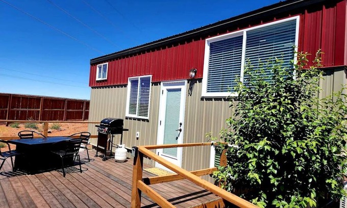 Beautiful mejestic Tiny Home full of charm. The perfect basecamp to visit the area. We are located near Zion National Park, Grand Canyon North Rim, Bryce Canyon National Park and many other great destinations. The Tiny Home is equipped with a King bed in the loft, two twin beds on the main floor, and a pull out bed in the living room. There is a kitchen, and a cozy bathroom. Enjoy the private large deck with a fire pit, BBQ and outdoor seating. Spend time relaxing inside with ac, WiFi and TV