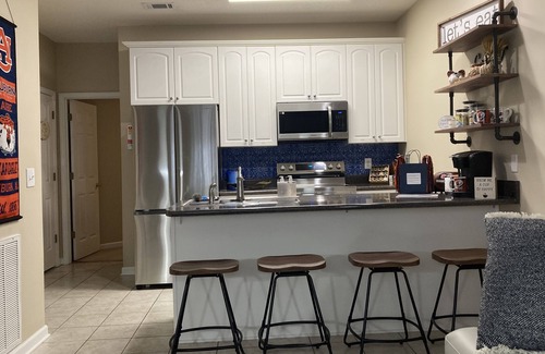 Imagine yourself in the center of all Auburn has to offer, in a newly updated, meticulously maintained condo. Perfect for sporting events, graduation, Camp War Eagle, sports camps or just enjoying the loveliest village on the Plains. Our 2 story condo with living room, kitchen, powder room and ensuite on the first level and 2 bedrooms, jack & jill bathroom and laundry room on the second level sleeps 8 comfortably. Outfitted with new appliances, furnishings, mattresses and linens you may never want leave, but you'll find getting around is easy. Park your car right outside your door and walk or Uber to campus, Toomer's Corner, College Street, Magnolia Ave etc.
