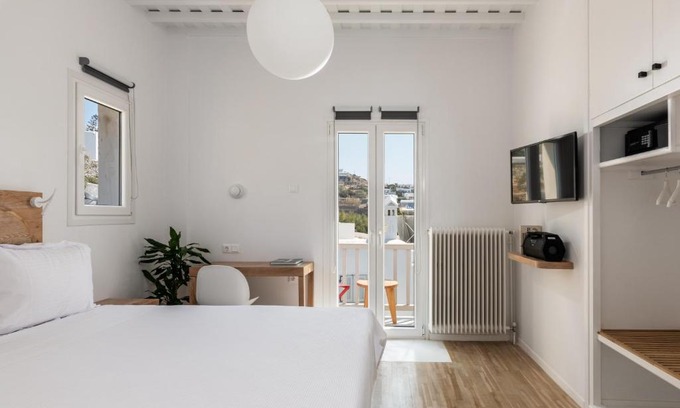 Gazia Sea View House - Mykonos Town provides a garden and accommodations with a kitchen in the center of Mikonos, a 5-minute walk from Agia Anna Beach. This property offers access to a patio and free private parking. The apartment offers sea views, a sun terrace, and free Wifi is available throughout the property. The apartment complex will provide guests with air-conditioned units offering a desk, a coffee machine, a fridge, a stovetop, a safety deposit box, a flat-screen TV, a balcony, and a private bathroom with a walk-in shower. Kitchenware and kettle are also offered. At the apartment complex, the units include bed linen and towels. For those nights when you'd rather not eat out, you can have groceries delivered. Sightseeing tours are available in the vicinity. If you'd like to discover the area, cycling is possible in the surrounding area, and the apartment can arrange a car rental service. Popular points of interest near Gazia Sea View House - Mykonos Town include Mykonos Windmills, Archaeological Museum of Mykonos, and Little Venice. Mykonos Airport is 1.2 miles from the property, and the property offers a paid airport shuttle service.
