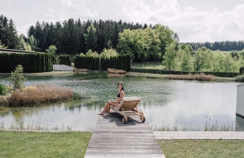 Surrounded by the gently rolling hills of the Innviertel region, Geinberg5 Villen offers luxurious spa suites with private access to a bathing lake and a private spa area, just 1148 feet from the main building of the Vitalhotel Therme Geinberg Complex. The villas enjoy a quiet and sunny location on a hill, with great views of the surrounding area. Each suite comes with a 82 ft² wellness area featuring a free-standing bathtub, an open fireplace, a Finnish sauna and a steam bath. You can also unwind in the private spa bath on the terrace. Massages and beauty treatments are available in the privacy of your own suite and concierge services can be requested. A wide range of cold and hot drinks is served at the on-site bar and award-winning international cuisine can be sampled in the Geinberg5 Restaurant, which also features a terrace. Geinberg5 Villen further offers a common wellness center with a relaxation lounge, a Turkish bath and different pools. You can also enjoy a varied spa landscape with 9.8 ft² of water surface, 5 pools, 3 water worlds (thermal, fresh and saltwater) and 11 saunas at the 4*S Hotel Spa Resort Geinberg. The famous Baroque town of Schärding is 22 mi away. There are many cycling and hiking trails in the surrounding area, as well as 11 golf courses within a 45-km radius.