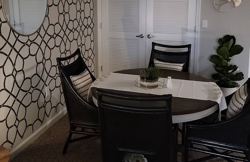 Kick back and relax in this calm, stylish space. The Gem on Clyde Morris was thoughtful put together so that our guests would be as comfortable as possible. From our coffee bar in the kitchen to the hand painted gingko leaves in the bathroom, no details were spared.