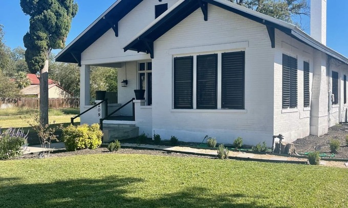 Located in the heart of Del Rio. Guests will enjoy numerous amenities, including high-end furnishings and linens, efficient kitchen, large living room, 2 full bathrooms, and 4 stylish bedrooms. Enjoy the front porch or entertaining backyard. Located in quaint neighborhood~2 short blocks to Main St.