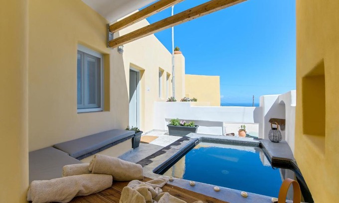 Geminos Complex Villas is a recently renovated villa in Kamari near Art Space Santorini. This property offers access to a terrace, free private parking, and free Wifi. Guests can use the hot tub or enjoy quiet street views. Accommodation is equipped with air conditioning, a fully equipped kitchen with a dining area, a flat-screen TV, and a private bathroom with shower, bathrobes, and slippers. A balcony with outdoor furniture and sea views is offered in all units. At the villa complex, units include bed linen and towels. Archaeological Museum of Thera is 4 miles from the villa, while Santorini Port is 4.9 miles from the property. Santorini International Airport is 1.2 miles away.