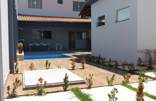 A property with safety, comfort is great value for money, a brand new construction, with a great location for those seeking moments of rest. Within 600m we have, Supermarket, Drugstore, Bakery, Gas Station. We are located in Passos-MG, the venture is less than 40 minutes from the main tourist attractions of the region of Furnas Lake and Serra da Canastra. It will be a pleasure to welcome you to enjoy the beautiful leisure area available on site. We have three suites, TV room, kitchen equipped with utensils, swimming pool with hydromassage, waterfall and lighting, barbecue area and garage for 2 vehicles. Welcome, everyone.