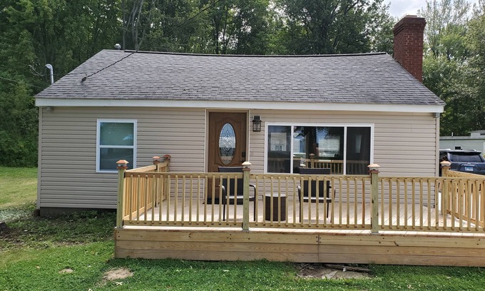 Fully renovated and remodeled lake view home. This 2 bedroom and 2 full baths home boasts a spacious kitchen, large decks, beautiful great room and large yard for relaxing or playing in. Convenient location to enjoy Geneva's amazing Wine Country, the local State Parks and the rich historical downtown of Geneva and Lake Erie. This home sleeps 6 comfortably with a Full bed in the front room, a Queen Master bedroom in the back with a walk out small deck and access to the back yard and garage, and a Queen sofa sleeper in the living room and offers family fun and beautiful views of Lake Erie.