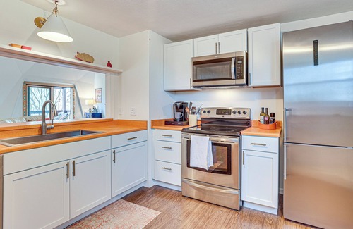 KITCHEN: Cooking basics, breakfast bar w/ seating, stainless steel appliances, dishware & flatware, spices & oil, Keurig coffee maker (K-Cups provided)
