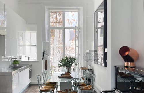 This two-story Georgian apartment, located on the first floor and overlooking a leafy garden square in the heart of Bayswater, features impressive 4-meter ceilings and French doors that provide a light and peaceful atmosphere reminiscent of a Parisian home. The apartment can comfortably accommodate 6 guests, with the option of additional guests on request with its flexible sleeping arrangements.