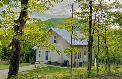 We are located 3.7 miles down a maintained dirt road, a peaceful drive in the country! Our getaway is situated on 14 acres of wooded land, sitting beside a springtime running stream! Our guests are welcome to explore our property and enjoy the creek! We have a fire pit for you to enjoy as well as a grill on the patio! we provide firewood for our guests!