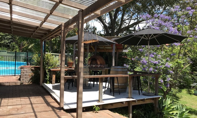 Sit back and relax in the BBQ area or cook up some pizzas in the outdoor pizza oven while the kids play in the private salt-water pool and listen to birds sing or enjoy watching the wallabies from the covered deck. There is a cycle-way which runs from Narooma to Dalmeny. There is plenty of local activities such as fishing, golding, scuba diving, surfing, cycling, jogging, BBQ boat hire, Inlet Boat Cruise and local seal watching that can't be missed. Visit famous Tilba Tilba township, Bodalla Cheese Factory, Moruya Races and Potato Point to name a few! (Please check local news for all festivals around the area or what's on in Narooma for more details).