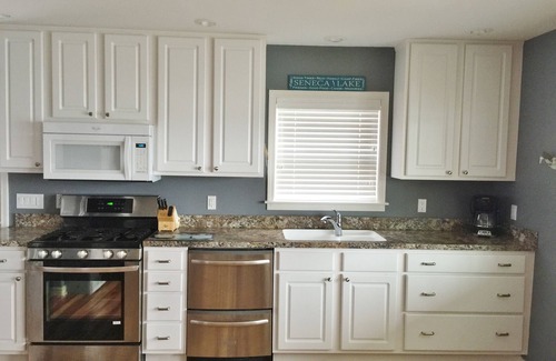 Wake up to the beautiful sunrise over Seneca Lake while sitting on our screened in porch overlooking the lake. Relax in our lakeside cottage, fully stocked with everything you will need for the perfect summer getaway. Jump in one of our 3 kayaks and explore our quaint and beautiful cove. Go swimming, fishing, hiking, or visit the Climbing Bines Brewery just a stones throw up the road...Climbing Bines offers outdoor games, live music, Food trucks, a frisbee golf course, and much more!