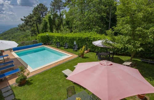 Very beautiful, cosy 2-family house "Matteo", 469 m a.s.l renovated in 2018, surrounded by trees. In a quiet, sunny, elevated position. For shared use: garden 150 m2 (fenced) with plants and flowers, swimming pool (7 x 5 m, seasonal availability: 01.Apr. - 15.Oct.) with salt water. Garden furniture, public parking 50 m on the road. Grocery 100 m, supermarket 10 km, restaurant 1.5 km, bar 100 m, bus stop 100 m, railway station 15 km. Walking paths from the house 5 km. Nearby attractions: Montecatini Terme 15 km, Pistoia 203 km, Firenze 55 km. Well-known ski regions can easily be reached: abetone 40 km. Please note: baby equipment (included). Groups of teenagers on request only.