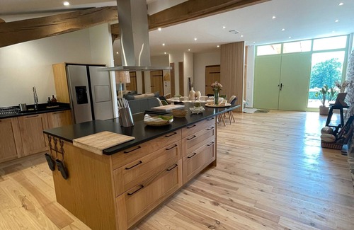 Located in Beguios, in the heart of the Basque Country, this high-quality 250 m² gîte can accommodate up to 12 people. The property features a spacious 100 m² living area, ideal for gathering as a group or family.