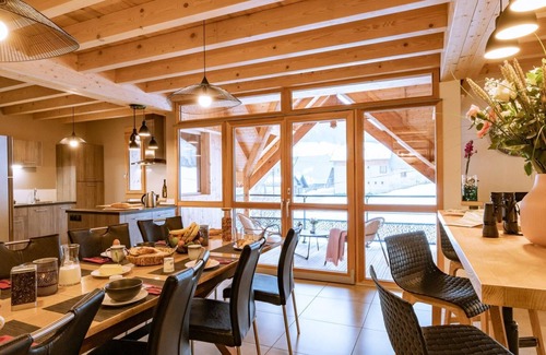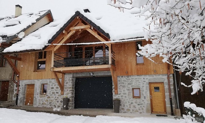 Semi-detached house on 2 floors with independent entrance. Ground floor: entrance and private garage for two vehicles. 1st floor: living room-kitchen-lounge, 2 bedrooms (1 double bed 160x200cm with shower room / 2 twin single beds 90 x 200), shower room (shower), separate toilet and laundry room. Balcony-terrace of 10m². 2nd floor: living room-mezzanine, 2 bedrooms (1 double bed 160x200cm with bathroom (bathtub) and dressing room / 4 single bunk beds 80 x 200cm), separate toilet. Sheets, beds made, household linen and towels included. Green Up socket for charging electric vehicles (charging charge required, see terms and conditions with the owners). Large furnished terrace with garden furniture and children's cabin in the annex in the garden. Old renovated barn located 24 km from the slopes, in a charming typical hamlet nestled in the heart of the Massif des Bauges Regional Natural Park. Facing south-east, it overlooks a valley and the vineyards of Savoie. Peaceful environment with an exceptional setting of preserved meadows and forests. Very comfortable and warm, with a large balcony-terrace facing south.