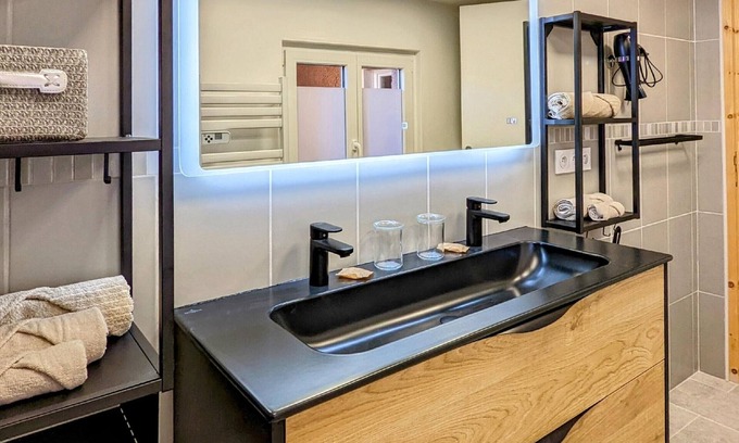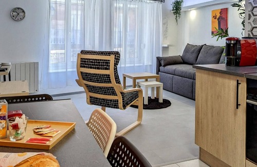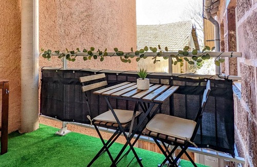 In the heart of the historic center of the spa town of Luxeuil-Les-Bains, on the 1st floor of an old building, very beautiful apartment with modern and refined decoration, comprising: entrance with large dressing room, living room with sofa bed (possibility of 2 additional beds), flat screen TV, wifi, open to a beautiful fully equipped kitchen. 1 separate toilet. A large bedroom with 1 bed of 160 cm, with TV, giving access to a small balcony, with garden furniture, grill. Modern bathroom with large shower. 1 baby bed available.
