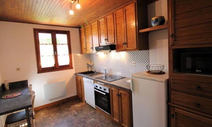 This gîte has enclosed grounds of 700m² and private parking. You can share a moment of conviviality on the terrace at the back and equipped with garden furniture, a plancha and deck chairs. On the ground floor, fitted kitchen, living room with flat screen TV and fireplace with wood stove (25€/week), bathroom and separate WC. On the 1st floor, 2 bedrooms with 1 double bed, 1 bedroom with 2 single beds and 1 separate toilet. Electric heating according to consumption. Prices include all charges in high and very high seasons.