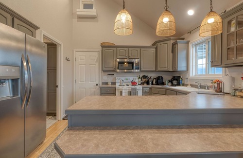 There is a $20.00 per night pet fee, maximum of 2 pets. Please do not leave pets unattended in the home. There is a heated attached garage with dog bed, blankets, and bowls available to leave your pets for a couple hours to go to the store or meal out. Use pet blankets provided on beds or furniture for pets or there will be an extra cleaning fee of 100.00 per visit for pet hair on bedding and furniture.
