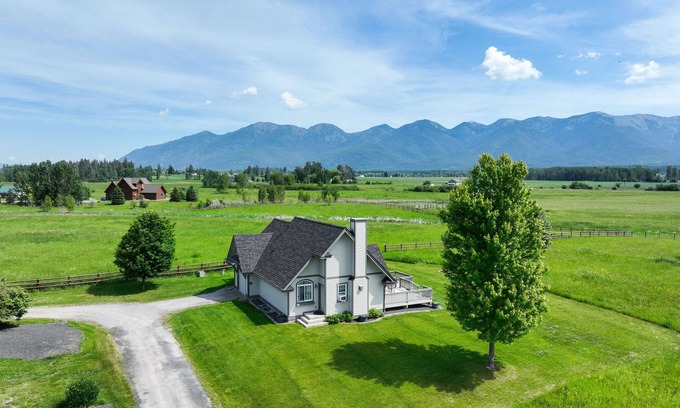 Mountain views, 10 peaceful acers in farmland, cozy. charming, peaceful home with fireplace. Large deck, firepit. Bose surround sound music system with indoor/outdoor speakers. No parking in the garage, it is small and an extension of the home, a mudroom and storage space for guests. 40 minutes to Glacier National Park, whitefish mountain resort. 20 minutes to, Bigfork, and flathead lake. Lower Flathead River, riverside boat launch park in neighborhood. cohost lives next door for any questions or issues. Occupancy is limited to 4 guests in the main house in the Winter from November through april due to the upstairs bedroom being detached up snowy, icy stairs with no bathroom connected. Maximum of 4 people in the summer may through October, children and infants included.