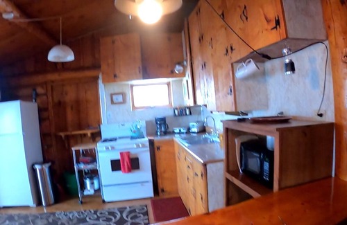 The Glacier View Log Cabin has a wood-burning stove with plenty of firewood and kindling available for your use. The cabin has TV, DVDs, and a quality wifi connection. In addition, you'll find a radio tuned to the local station, and a propane grill in the yard, so you do not need to bring charcoal.