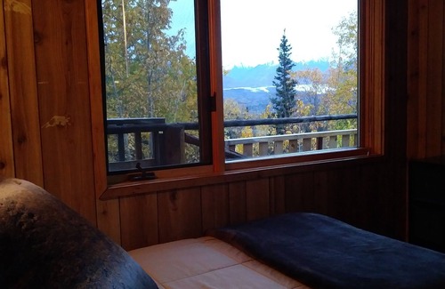 Perched on a hillside above the Glenn Highway, just a two hour drive from Anchorage, Alaska, the Glacier View Log Cabin is a perfect mountain retreat for 1 to 7 people. You can prepare your own meals in the fully equipped kitchen, or dine at our local lodge across the road.