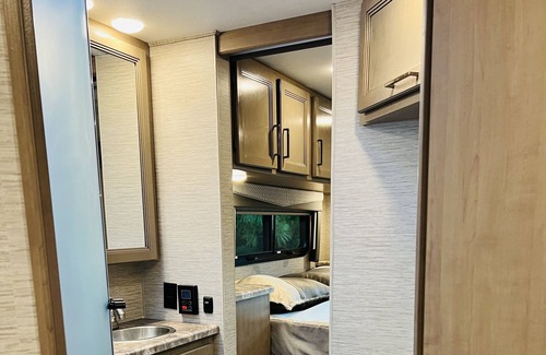 Meet "Vera" our cozy Class C RV, named after my late grandma who loved to RV. Your home away from home. Stay in style in our 2022 spacious motorhome. Can sleep 8-10 people comfortably with a spot for everyone. Queen bed, bunkhouse with 2 bunk beds, 2 full beds, 1 cabin bunk that sleeps 2 over the driver. Entertain with 2 TV’s inside and 1 outdoor TV. Outdoor and indoor showers so you can wash the pets or sandy feet before coming in. Storage drawers and compartments galore. Air, heat, ventilation, microwave, convection oven, fridge, freezer….. all the bells and whistles. We provide all bed linens, towels, pots, pans, coffee maker, plates, cups, silverware and more.