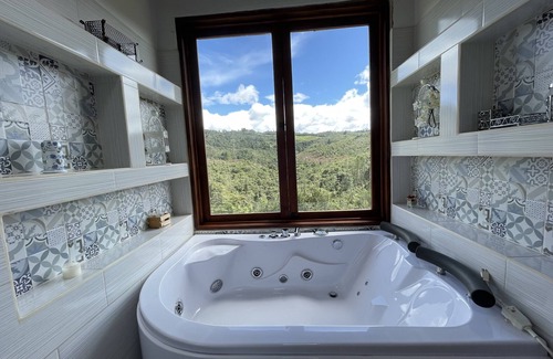 | GeneralPrivate hot tub, Number of living rooms 0, Number of bedrooms - 0, Ping - 11, Bathtub or shower, Square meters - 36, Square feet - 388, Number of bathrooms - 1, Jetted bathtub, Mini-fridge, Cookware, dishware, and utensils, Private bathroom, Kitchen, Private hot tub (rooftop), Garden view, Bed count maximum 3, Bed count minimum 3 |