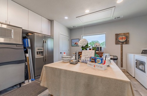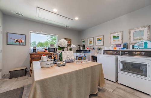 Each unit also has access to the outdoor area with a playground (adult must be present), hammocks, BBQ pits, fire pits (must follow county guidelines if there is a burn ban in effect), corn hole, room to walk and enjoy our property, and outdoor dining areas. We do allow dogs, but they must be on the leash at all times as we have free range ducks and chickens that roam the property. We also have a dog park and dog wash station available!