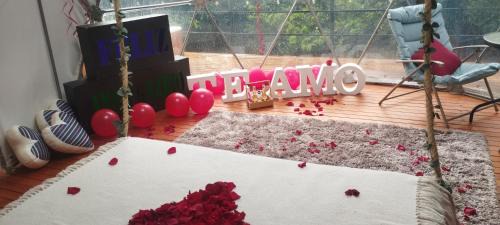 Featuring lake views, Glamping Montaña Escondida in Fusagasuga provides accommodations, an open-air bath, a garden, a bar, and a shared lounge. This property offers access to a balcony and free private parking. The luxury tent features mountain views, a sun terrace, a 24-hour front desk, and free Wifi is available throughout the property. Guests can stay warm with a fireplace in every unit. Each room is fitted with a private bathroom with a hot tub, while some rooms have city views. Additional in-room amenities include wine or champagne, fruit, and chocolates or cookies. A continental, American, or vegan breakfast can be enjoyed at the property. Guests are welcome to eat at the on-site restaurant, which is open for dinner and lunch. Sightseeing tours are available in the neighborhood. The luxury tent has a picnic area where you can spend the day outdoors. Piscilago is 30 miles from the luxury tent. El Dorado International Airport is 45 miles from the property.