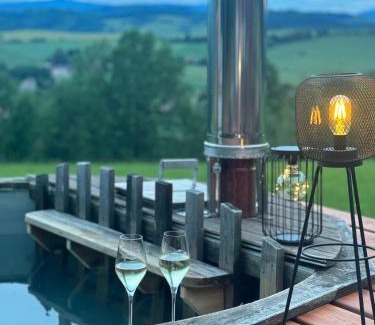 30 miles from University of West Bohemia in Mochtín, Glamping Salaš features accommodations with access to a sauna and hot tub. Housed in a building dating from 2023, this vacation home offers free Wifi and free private parking. Outdoor seating is also available at the vacation home. Featuring mountain and garden views, this recently renovated vacation home provides 1 bedroom and opens to a terrace. A private entrance leads guests into the vacation home, where they can enjoy some wine or champagne and chocolates or cookies. There's also a seating area and a fireplace. If you'd prefer to cook in the comfort of your own space, you can make use of the kitchenette facilities, which include a fridge and kitchenware. Guests can also relax in the garden. Ceske Budejovice Airport is 67 miles away.