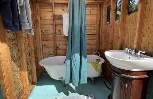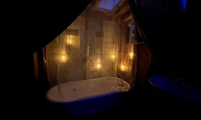 An eco-friendly, well-appointed dome in the foothills of the Cascades. Many hiking, scenic, and tourist opportunities are nearby. Wineries, breweries, distilleries, and a host of dining options also. Glampers can make use of a kitchen with a burner and fridge. A Solo firepit is available in the kitchen shelter with firewood is provided. There is an electric heater, electric blanket and comforter in the tent for colder evenings. For total relaxation, guests have access to a full bathroom with a clawfoot tub for soaking.