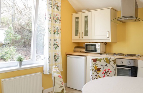 The living areas in the property consist of a kitchen with an electric oven and hob, microwave, fridge, dining seating for two and a sitting room with TV. There is a double bedroom and a bathroom. Outside there is a private decked area with furniture, raised lawn with seating, as well as free on-street parking available. Access to the property is up a steep slope, down a grassy path and several steps and may not be suitable for those with limited mobility. Whisk your loved one away for an idyllic stay in Glendower Apartment.