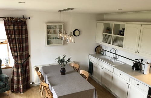 Amenities: Oil central heating with open fire. Electric oven, ceramic hob, microwave, fridge, dishwasher, washing machine, TV, WiFi. Fuel and power inc. in rent. Bed linen and towels inc. in rent. Off-road parking for two cars. Large, lawned garden to the front with seating area. Sorry, no pets and no smoking. Shop 0.1 miles, pub 0.3 miles, golf course 0.6 miles, beach 0.9 miles. Please note, over the Christmas week ( starting from 22/12 )- the minimum night stay is x5 nights.