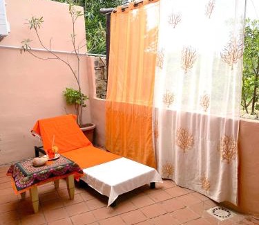 BathroomBathtub or shower, Shower, Toilet, Bidet, Hairdryer, Toilet paper, Towels, Private bathroomMedia & TechnologyFlat-screen TV, TV, Satellite channelsGeneralHeating, Tile/Marble floor, Private entrance, Mosquito net, Air conditioning, Trash cans, Key access, Smoke Alarm, FanKitchenDishwasher, Kitchenette, Kitchenware, Stovetop, Dining table, Microwave, Wine glasses, Washing machine, Refrigerator, Cleaning productsOutdoorsBalcony, Patio, Outdoor dining area, Outdoor furniture, TerraceLiving AreaSofa, Sitting area, Dining areaBedroomWardrobe or closet, LinensViewGarden viewAccessibilityUpper floors accessible by stairs only, Entire unit located on ground floorBuilding CharacteristicsSemi-detached, Detached, Private apartment in buildingRoom AmenitiesDrying rack for clothing, Sofa bed, Socket near the bed, Hypoallergenic pillow, Non-feather pillow, Clothes rackEntertainment & Family ServicesBaby safety gatesFood & DrinkBottle of waterLayoutWindow |