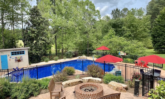 The Suite has a fully stocked kitchen and the décor is eclectic with global inspirations. Enjoy the gas fire pit in the cooler months and pool during May-Sept. It's available from 8am - 11 pm.
